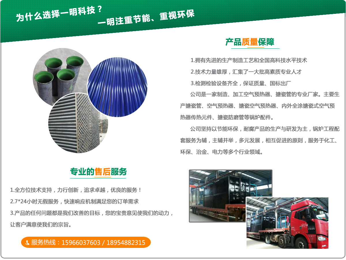 山東一明節能環保設備科技有限公司坐落于山東省肥城市,地處山東中部、泰山西麓,是資源豐富的魯中福地,文明中外的肥桃之鄉。肥城是有名的明星市、綜合實力縣(市)和山東省經濟縣(市)、精神文明建設市。肥城有著豐富的歷史文化,古稱“君子之邑”,是史圣左丘明的家鄉,商圣范蠡定居之地。公司是一家制造、加工空氣預熱器、搪瓷管廠家。主要生產搪瓷管、空氣預熱器、搪瓷空氣預熱器、內外全涂搪瓷式空氣預熱器傳熱元件、搪瓷防磨管等鍋爐配件。公司堅持以節能環保,耐腐產品(空氣預熱器、搪瓷管、管箱)的生產與研發為主,鍋爐工程配套服務為輔,主輔并舉,多元發展,相互促進的原則,服務于化工、環保、治金、電力等多個行業領域。是專門為電力、石化、紡織、印染等行業開發、設計、制造傳熱元件及配套設備的生產廠家。公司展望未來,我們謹持“質量、誠信、創新”的企業精神,繼續以客戶需求為導向,增加市場能力,為提升中國節能環保產業的整體水平...